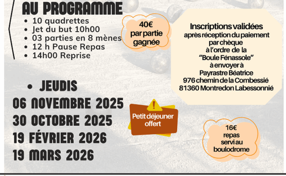 Résultats Dardilly Champ de France Quadrettes 2025 Le Championnat de France Quadrettes s’est déroulé le week-end dernier à Dardilly dans la banlieue de Lyon. Le CBD 31 a enregistré de très bons résultats grâce à ses joueurs. En premier lieu un grand bravo à l’équipe SERAFIN du Club Bouliste Toulousain […]