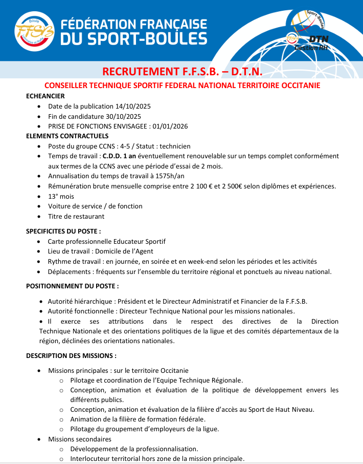 RECRUTEMENT CONSEILLER TECHNIQUE FÉDÉRAL