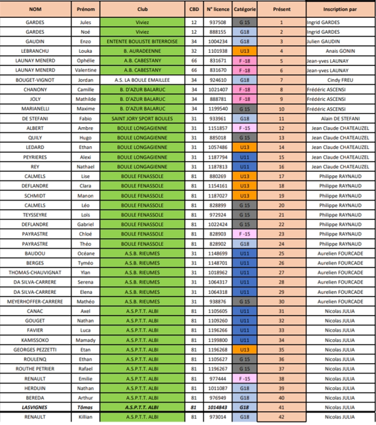 Accueil Activités Jeunes REGIONAL PRECISION : G 18 – F 18 – G 15 – F 15 – U 13 – U11 par Sylvain Dubois|Publié 29 janvier 2026 LES PARTICIPANTS POUR LE CHAMPIONNAT DE TIR DE PRÉSICION DE L OCCITANIE A BALARUC IL Y A 12 ALBIGEOIS ET 8 FENASSOLE