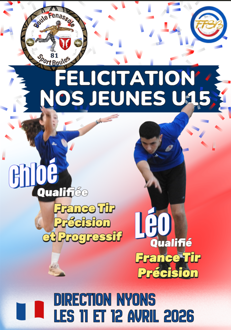 Accueil Activités Jeunes FRANCE TIR PRÉCISION ET PROGRESSIF A NYONS LE 11/12 AVRIL par Sylvain Dubois|Publié 12 mars 2026 FELICITATIONS A CES TROIS JEUNES TARNAIS : CHLOÉ ET LÉO ( lafenasse ) ET ARTHUR BEREDA ( asptt albi )