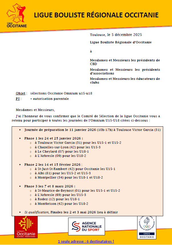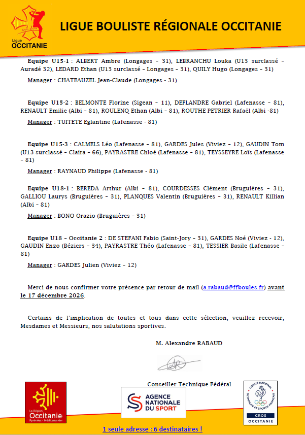Ligue M3 – Journée3 – le 13 Décembre 2025- CBD31& CBT